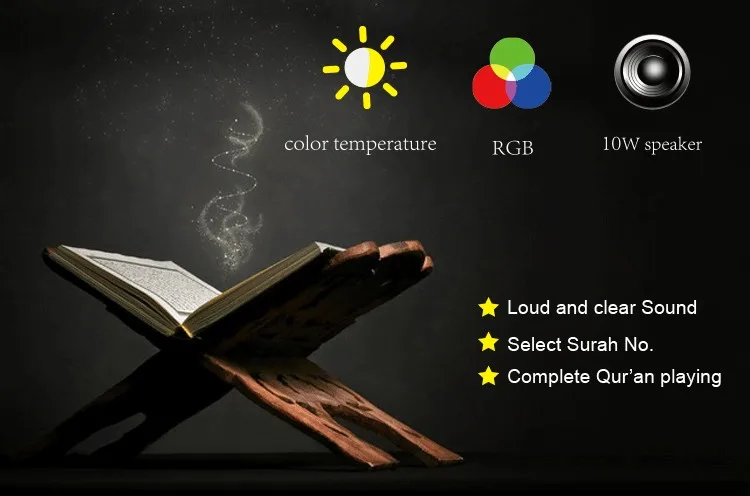 2.It is a lamp with full recitation of The Noble Quran,using remote control to select Quranic audio and listen to the Quran with high-quality voice.