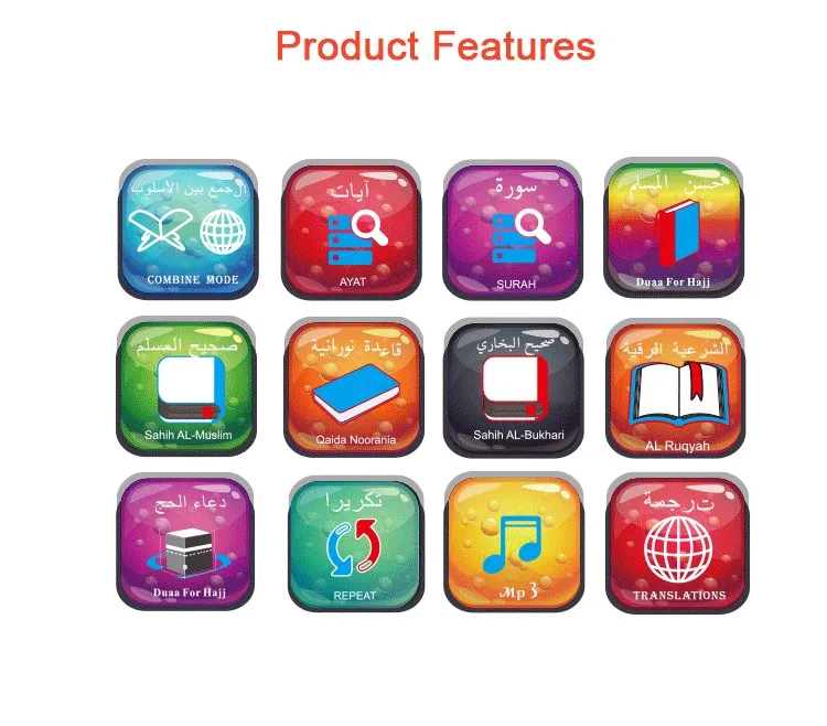 1.The quran player with LED lamp is a special product for Muslims using,which is with double function(lighting and learning);