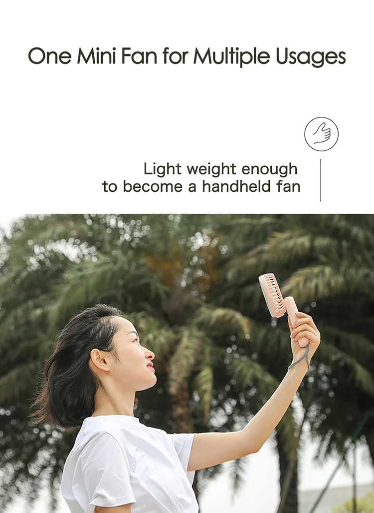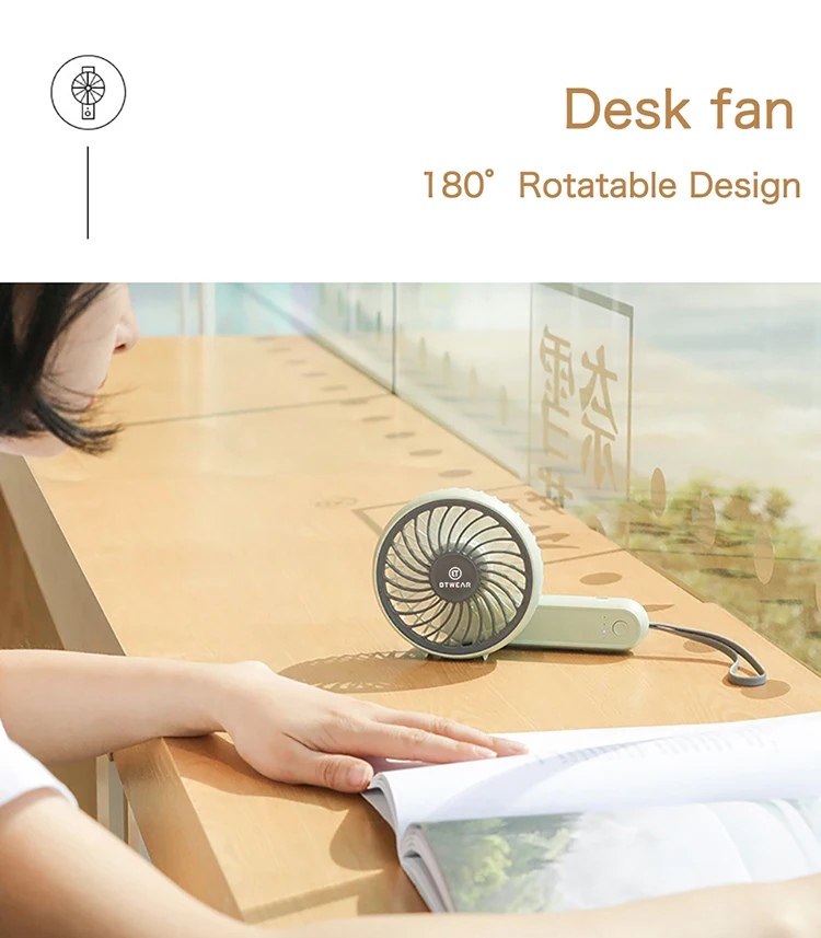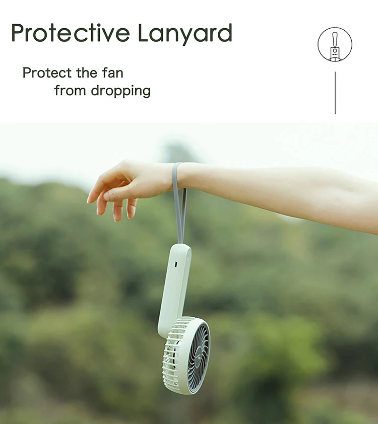 [Folding And Multipurpose Design]: This fan can fold up to 180°.You can use this fan: hold it on your hand/put it on the table/hang it on the sun umbrella/hang it on other objects