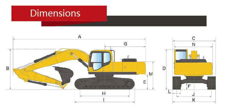 G.Tail swing radius : 2890 mm N.Overall width of upperstructure : 2830 mm