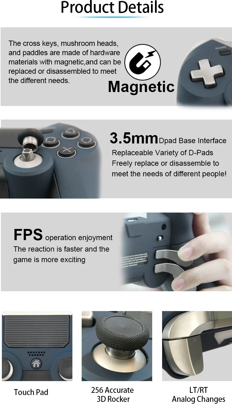 | Packing List | 1Game controller + 1 USB Cable +1USB Wireless Adapter + 2PCS D-pad + 2Pcs Thumbsticks + 4PCS Paddles |