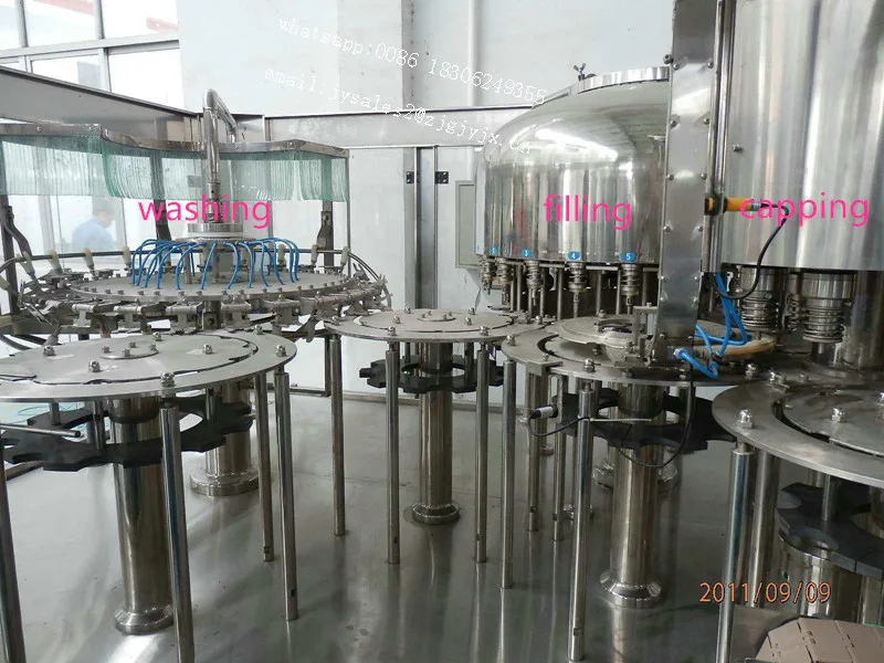 1. This equipment is automatic washing filling capping three in one machine. It’s of many advantages, such as compact structure, perfect control system and easy to be operated. Advanced touch screen and PLC control system makes man-machine communication true.