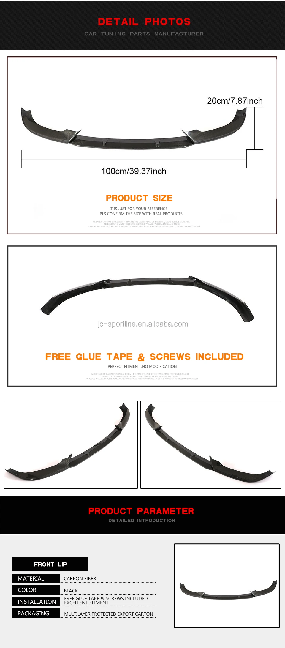 2. High quality real carbon fiber material S5 Front Lip, polished surface, light weight, high hardness