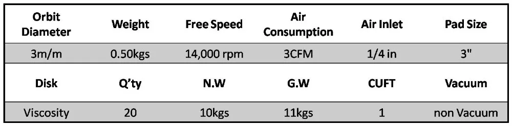 | Vacuum: | non-vacuum; | Sand Pad Size: | 3"; |