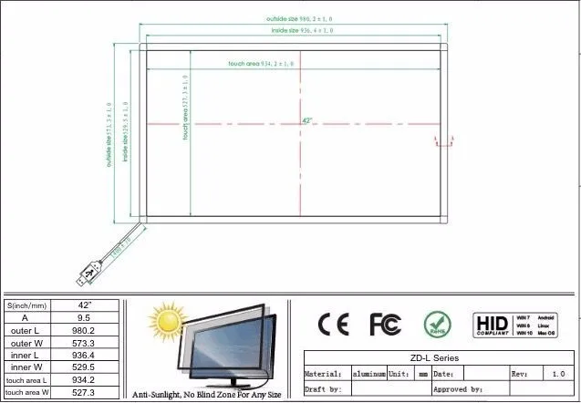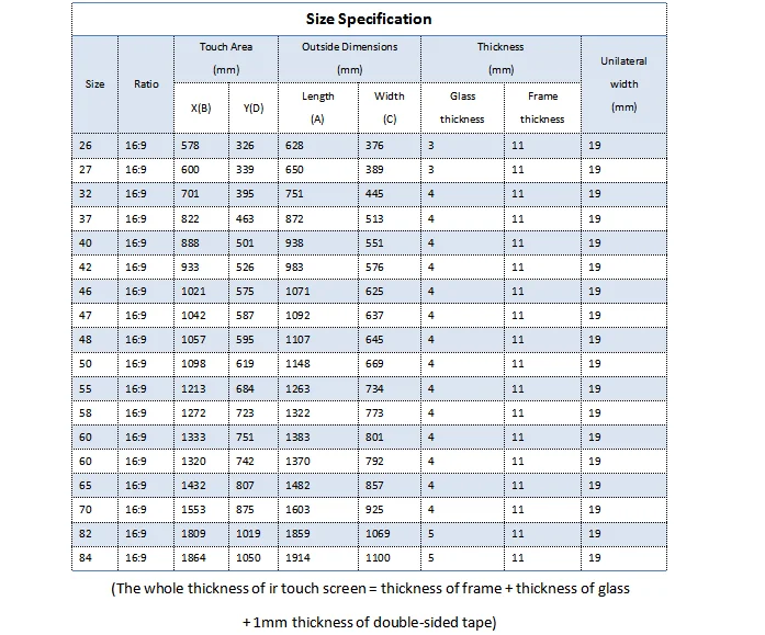 | Product name: | Multi ir touch screen frame 32, 42, 43, 49, 50, 55, 58, 65, 70, 84; | Place of Origin: | Guangdong China; |