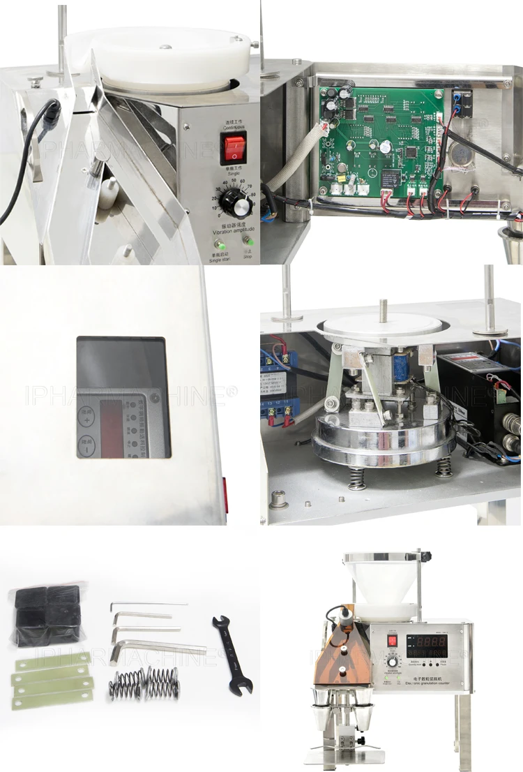 The machine can be adjusted to count capsules or tablets between 1-9999 pcs per bottle without changing spare parts.