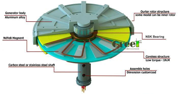 | Generator type: | Disc coreless Permanent Magnent Generator; | Brand Name: | GreeF; |