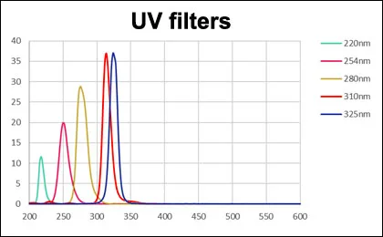 | CWL: | 214nm 228nm 239nm 254nm 275nm 289nm 330nm 340nm; | Type: | UV filter; |