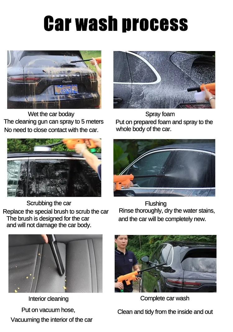 ·Wireless High Pressure cleaning Machine are used to clean cars, bicycles and motorcycles, gardens and floor dead ends.