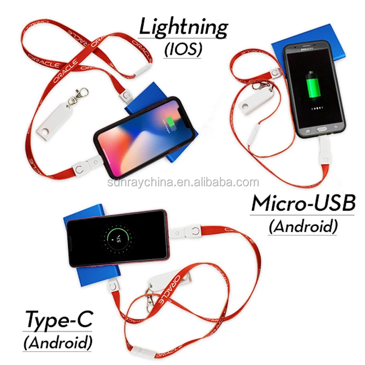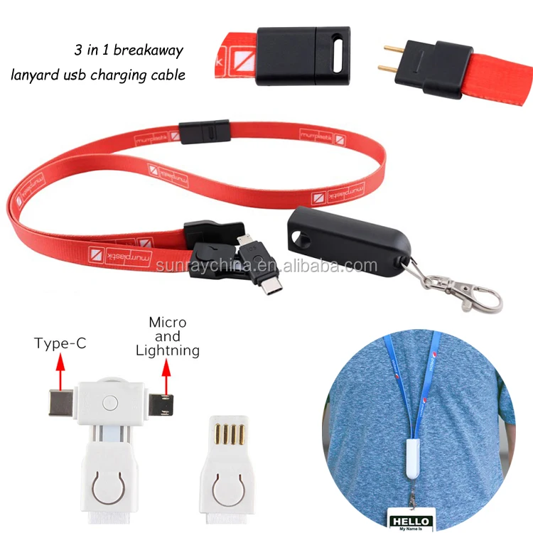 promotion gift 3 in 1 usb charger lanyard cable with safety buckle