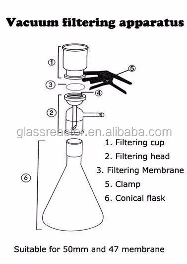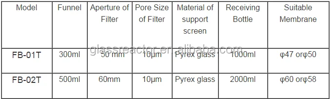 | Suitable Membrane: | diameter47 or diameter50; | Material of support screen: | Pyrex glass; |