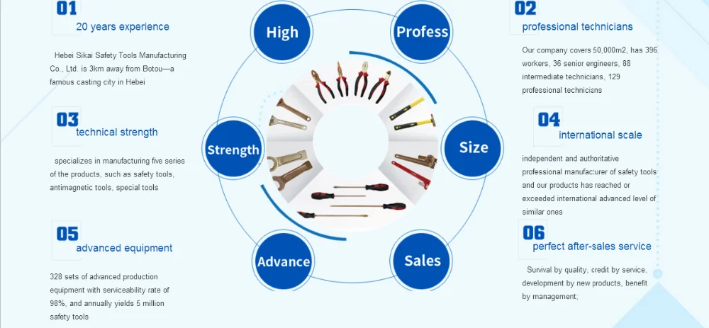 | Material: | Aluminum bronze alloy; | Packaging Detail: | Each piece of non-sparking tools packed in a polythene wrapper ,then packed in a carton.; |