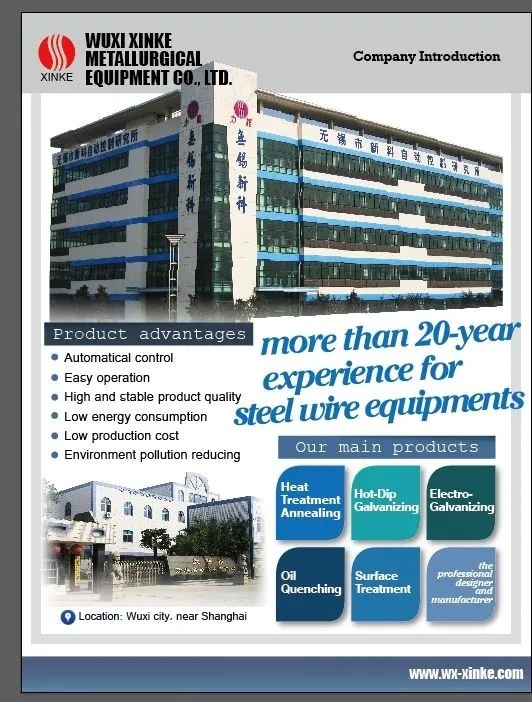 We get more than 20 years exprience being the prefessional design and customized making for steel wire production continuous lines,such as steel wire hot-dip galvanizing continuous line,steel wire electro-galvanizing continuous line,steel wire heat treatment continuous line,and etc.