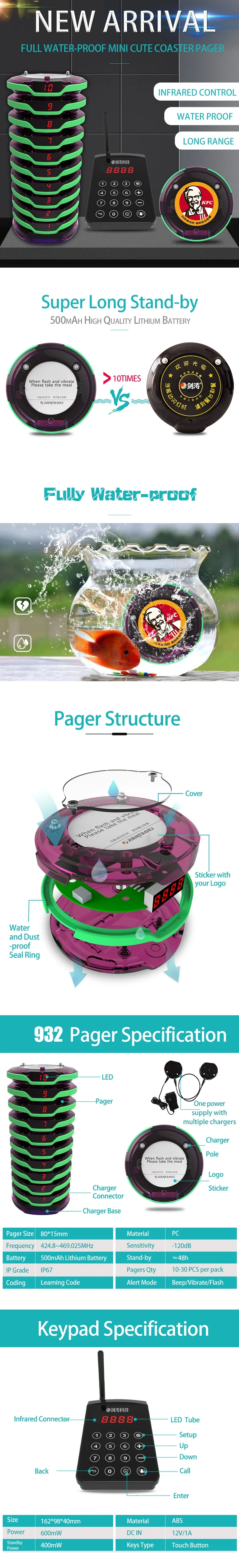| Feature: | Waterproof coaster pager; | Model Number: | JT-932KK; |