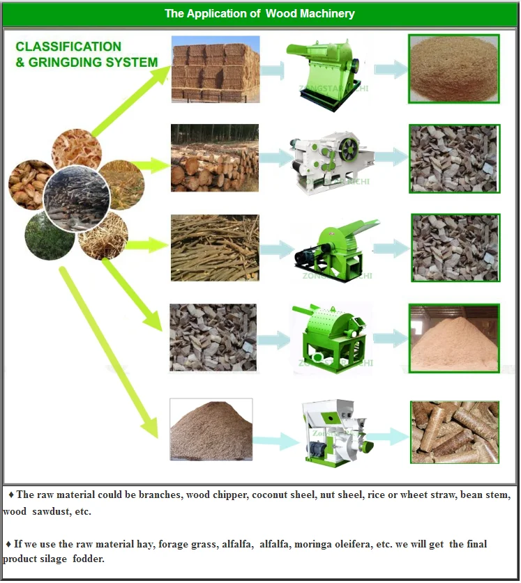 5. Application:crush wood logs,wood block and wood waste into sawdust and granular with different fineness.