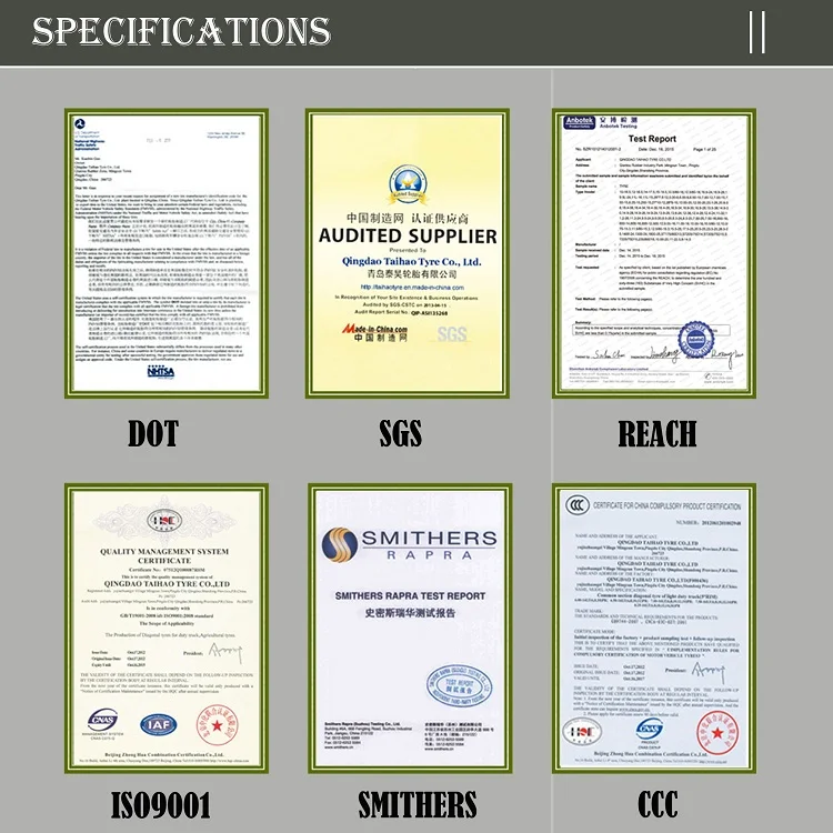ISO9001:2000, DOT, CCC, REACH,SGS, SMITHERS ect.