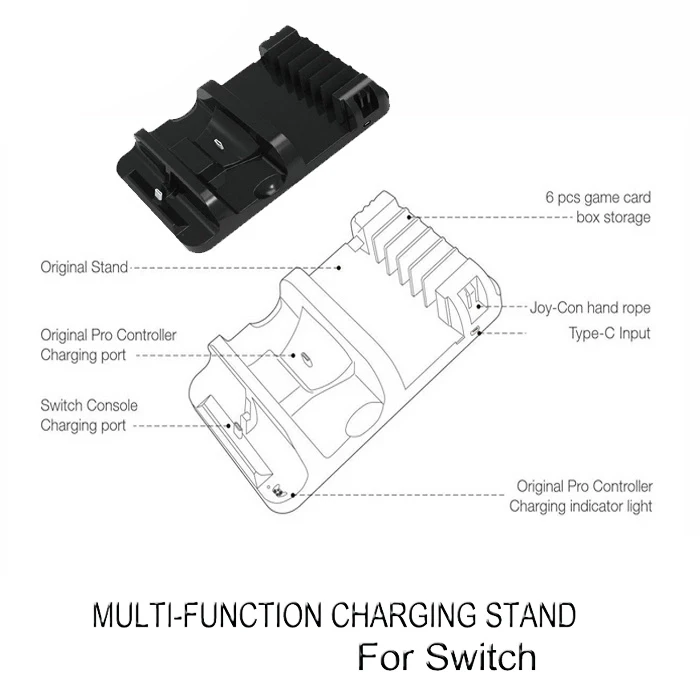 Multi-functional Charging Dock, Charging Stand Station for Switch Console and Joy-Con Controller, Storage for Dock andGame Card