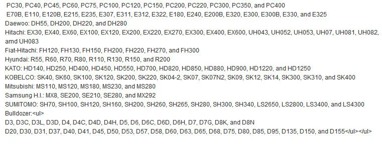 | Machine Model 2: | Volvo,JCB,Dawoo,John Deere, Liebherr, Case; | Machine type: | Bulldozer ,Excavator ,Crane,Track vehicle; |