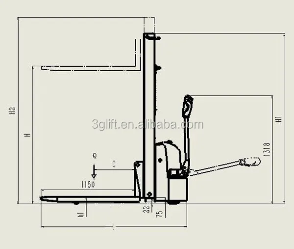 | Fork size: | 1150*160mm; | Lift height: | 1600-5000mm; |
