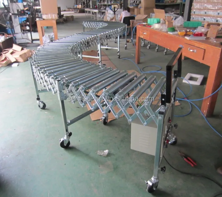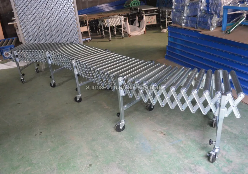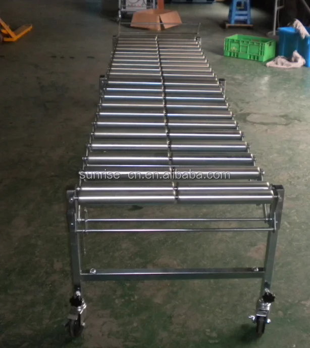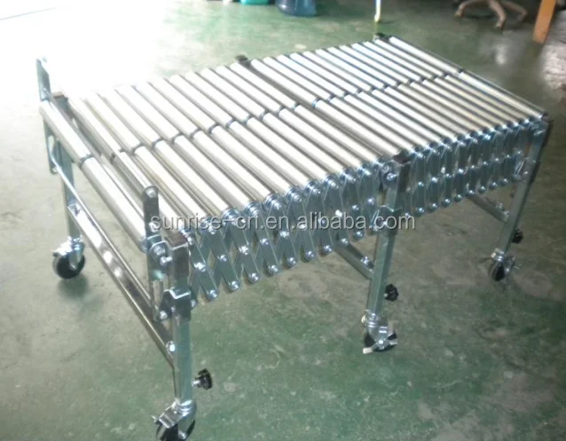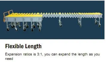 1 Gravity flexible expandable double-roller conveyor is designed specially for handling of carton packages with flat bottom.