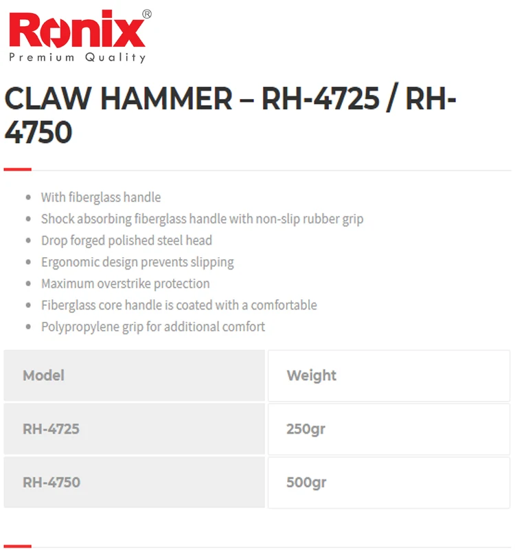 Ronix tries to get the satisfaction of all users by providing Premium Quality products and services in the field of Hand Tools, Air Tools, Power Tool, Wood Working Tools...and also providing an appropriate combination of price, quality, satisfying services and fast delivery.