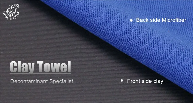 NORTH WOLF microfiber clay towel with one-side finished in a hi-tech rubber polymer coating, it's easy to remove the contaminant with water only, such as paint,asphalt, guano,dust,insect ect. Use with clay lubricant or water only. Much faster than traditional clay bar.