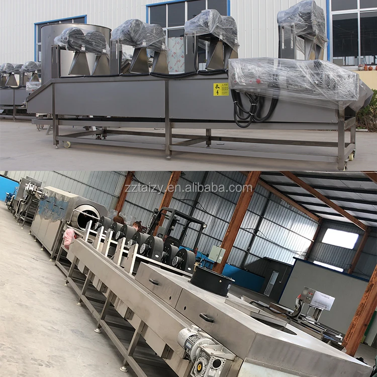 Our company's main machinery such as: potato chips,banana chips,peanuts, walnuts, almonds, cashew nuts and pine nuts production line; macadamia nuts, chestnuts, pistachios, ginkgo, acorns, cocoa beans, castor beans, sesame processing machine; various nuts butter making machines, nuts roasting machines, vegetable and fruit machine,washing machine,frying machine,oil press machines, packaging machines, etc.