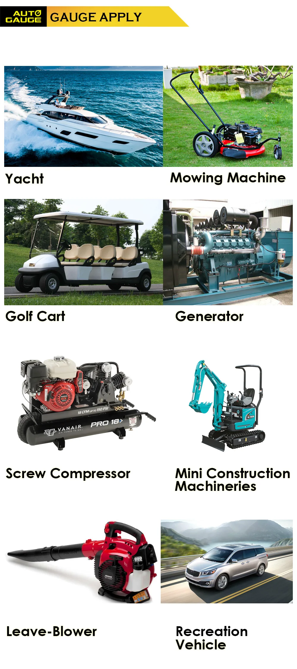 5. Apply for Yacht, Mowing machine, Golf cart, Generator