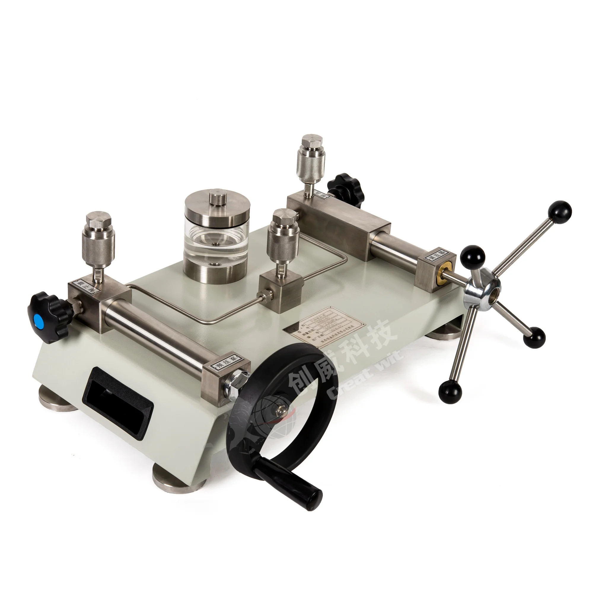 The pump (V19) serves as pressure generator for the testing, adjustment and calibration of mechanical and electronic pressure measuring instruments. It is widely used both in laboratory and on site for Power, Metallurgy, Petroleum, chemistry, Metrology industries.