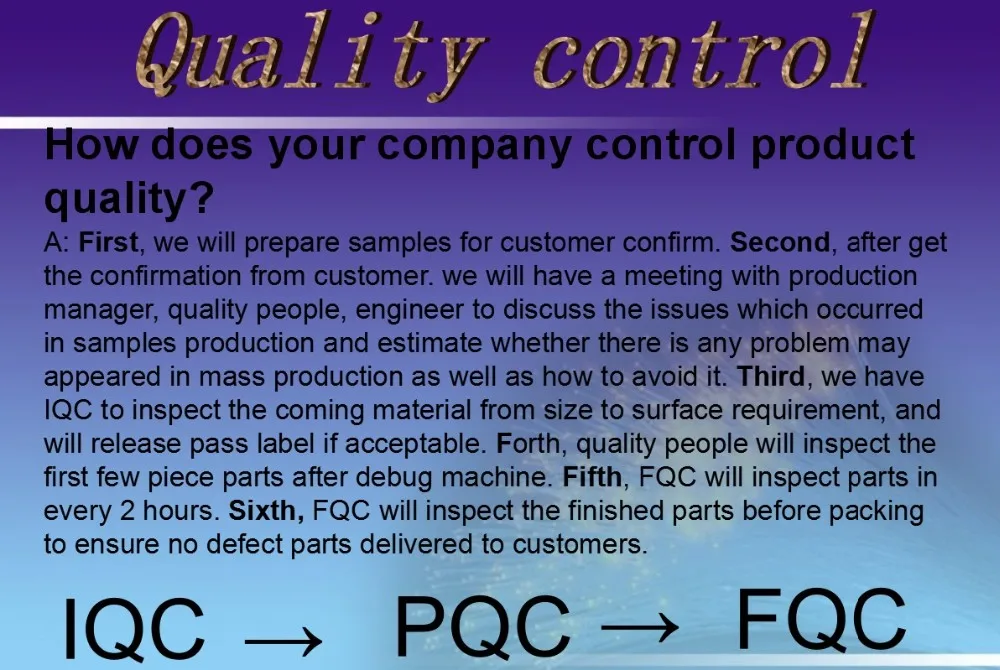 A: Firstly,we are a factory with more than 16 years' experience of hardware manufacturing and our own foreign sales group.