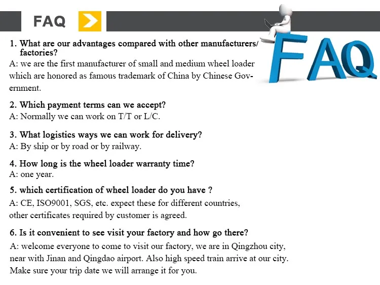Established in 2008, Qingzhou Rongwei Engineering Machinery Co., Ltd has be a professional manufacturer and export that is concerned with design, development and production of verity of wheel loaders from 1 ton to 5 ton capacity. Our factory located in Qingzhou, Weifang, Shandong province, with convenient transportation access. All of our products comply with international quality standards and has Approved Ce Certification and SGS certification. Rongwei verity of wheel loaders has got good reputation among our domestic and foreign customers.