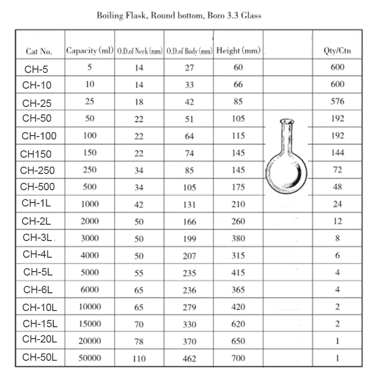 | Packaging Detail: | 1000ml chemistry lab glass borosilicate flask round Bottom Boiling flask Package: The goods pack in a Styrofoam and wooden box to avoid damage in transit.(Neutral package; | O.D. of neck: | 42mm; |