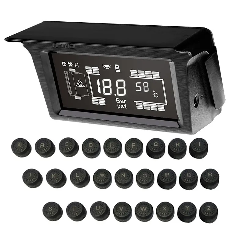 4. Alert immediately when temperature or pressure of tire under abnormal condition. Large capacity battery display.