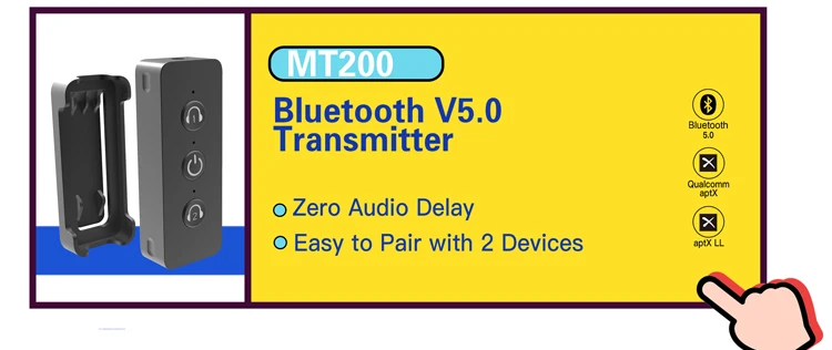 | Bluetooth chipset: | Qualcomm CSR8670; | Package Type: | Standard packing for dual link Qualcomm CSR8670 aptX low latency Bluetooth transmitter MT200: (1) Gift box with hard carrying case (2) Gift box with blister tray inside; |