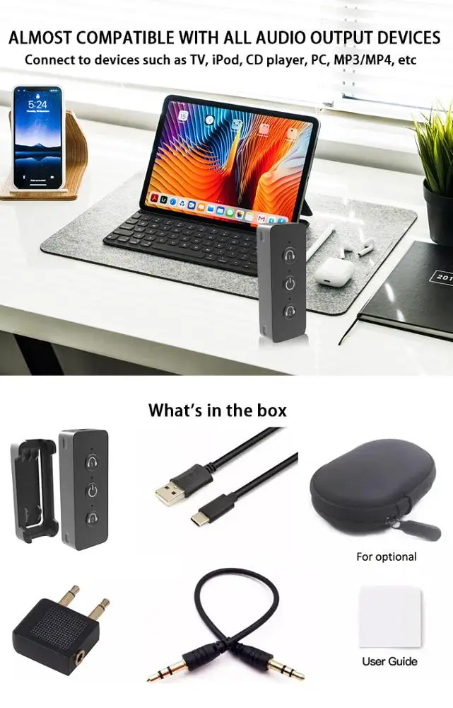 | Working range: | 10-15M; | Keyword: | CSR8670 aptX low latency Bluetooth transmitter with type C; |