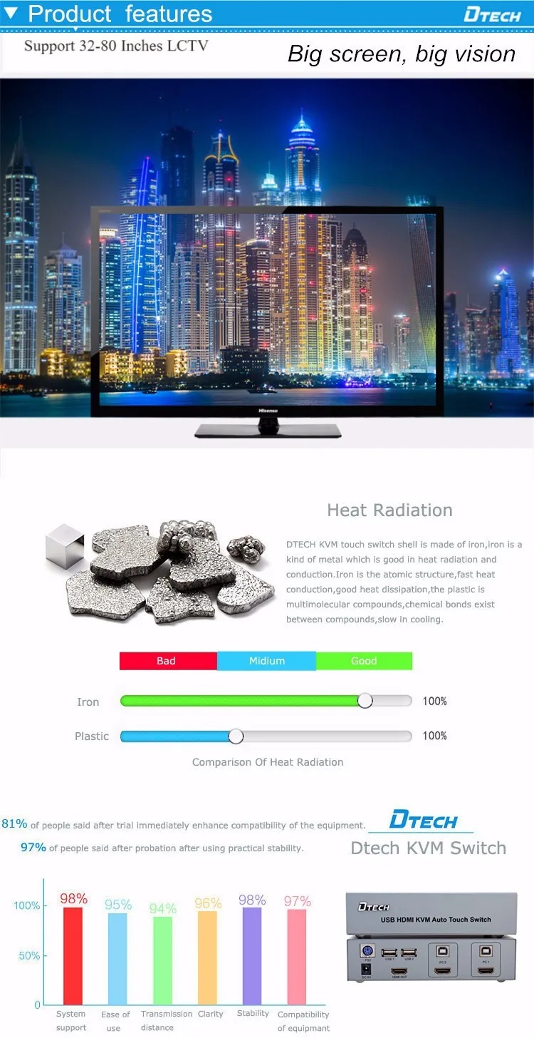 product introductionFast switch 2 port kvm switch dvi hdmi keyboard mouse and monitor switch 2 to 1 USB/HDMI KVM switch