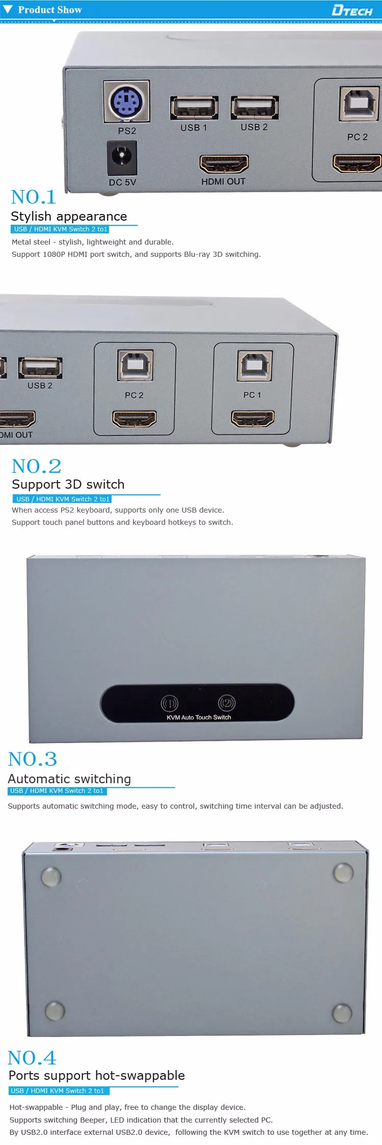 Product features Fast switch 2 port kvm switch dvi hdmi keyboard mouse and monitor switch 2 to 1 USB/HDMI KVM switch