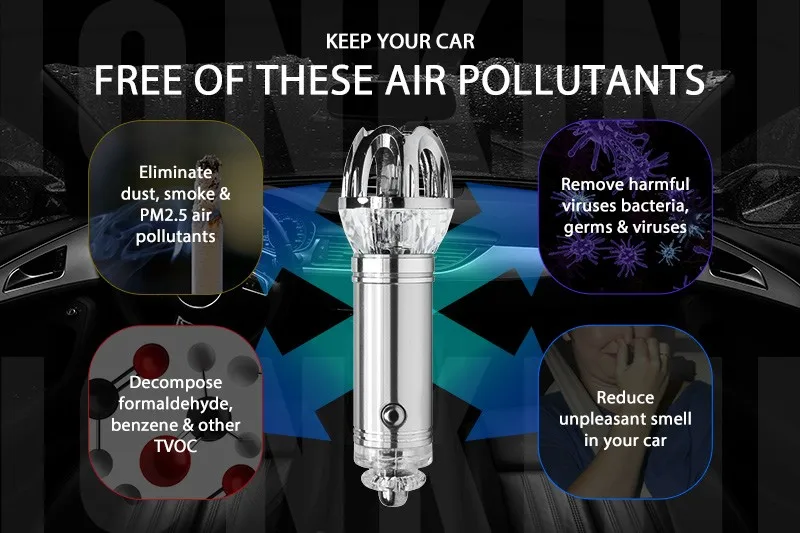 Portable Car Air Purifier JO-6281 is the 8th generation patented product of Ionkini Technology,