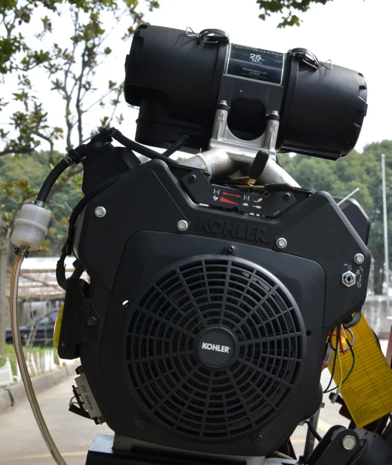 Import kohler engine, 25 HP, triple air filters system. The engine can cope the influence under the harsh construction environment, the maximum guarantee of the engine performance and work time.