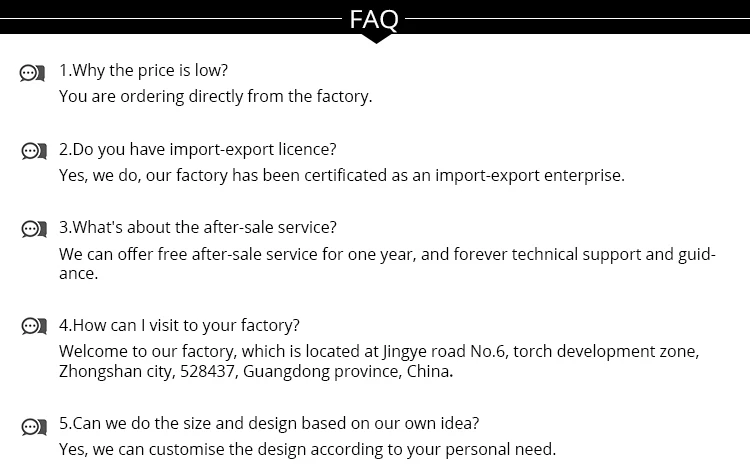 | Port: | Zhongshan or Shenzhen; | Delivery Detail: | 30 days after receiving deposit; |