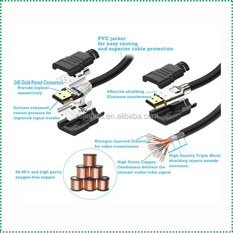 We Jiehua mainly produce HDMI cables,DVI cables,USB3.0/3.1 cables,Optical cables,3.5mm Stereo Audio cables,Displayport cables,MHL cables etc.