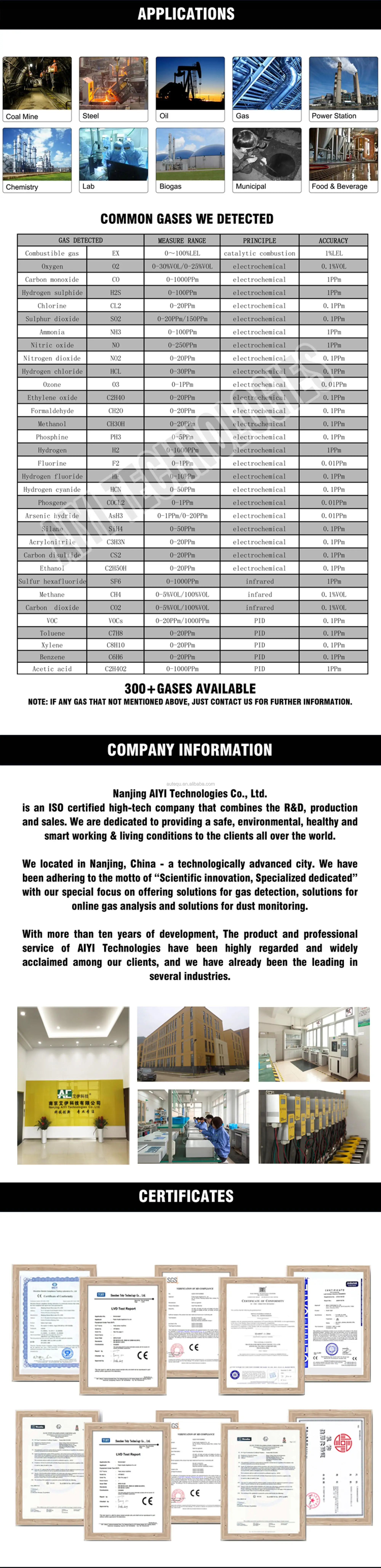 | Brand Name: | AIYI; | Measure Range: | LEL:0-100%,O2:0-30%, CO:0-1000ppm, H2S:0-100ppm,customized; |
