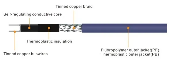 | Supply Ability: | 15000 Meter/Meters per Week for inside pipe self regulating heat trace cable; | Conductor Material: | Tinned copper buswires; |