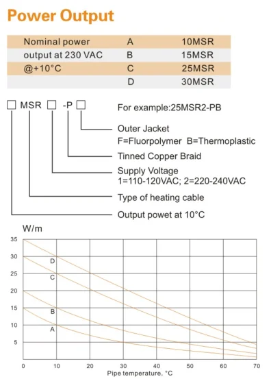 | MSR inside pipe self regulating heat trace cable series: | |