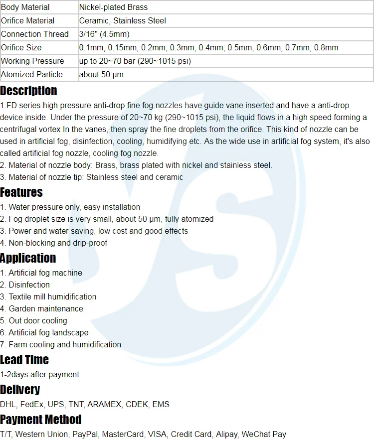 FD 50 Micron High Pressure Mist Fog Nozzle