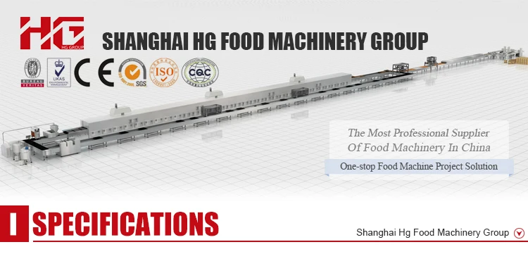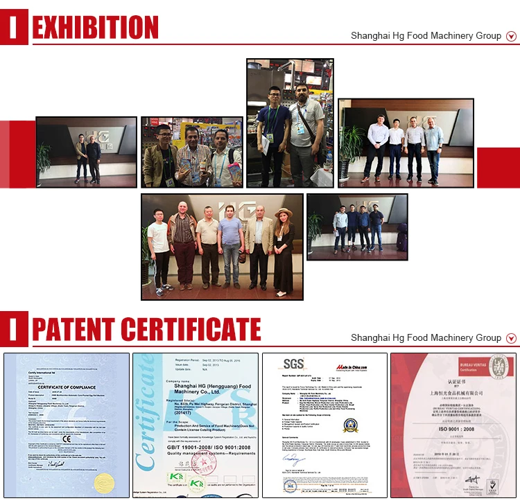 Shanghai HG Food Machinery corporation has passed the ISO9001:2000 certification, also presented quite a few patents rights. Besides, we also become a member of the CE warranty system. For this processing line, we added the PLC encoded control by Touchscreen, with intelligent processing method, it can control the exact details of the outpt products in a method that is actual precise.