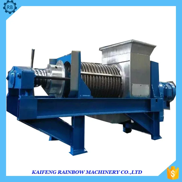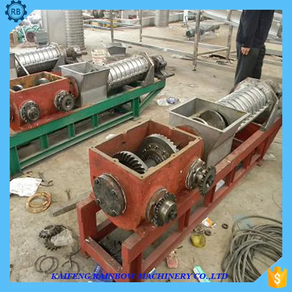 This machine is composed of main frame,driving system,feeding system,extracting system,hydraulic system,electric controller and outside cover. Pressing screw is rotating,together with the main spindle, material handling spiral collar on the spindle is counter rotating with the pressing screw.The plunger type pump provide oil to hydraulic system pressure and control the pressure through the adjustable pressure relief valve,Two fuel tanks mounted on the Rea bearing seat,to control the size of the material outlet and the moisture of the slag through piston rod extending.