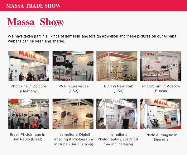 MASSA , as the leader in the industry of photographic equipment, has the complete products line, one-stop shopping is possible for all customers, the main products include Digital filters, Wide angle lens,Tele lens,Adapter rings/tubes,lens hood,Flash light accessories, Lens caps, Wireless remotes, Cleaning Kits, tripods, Studio soft box( Reflectors lights/Photographic table)