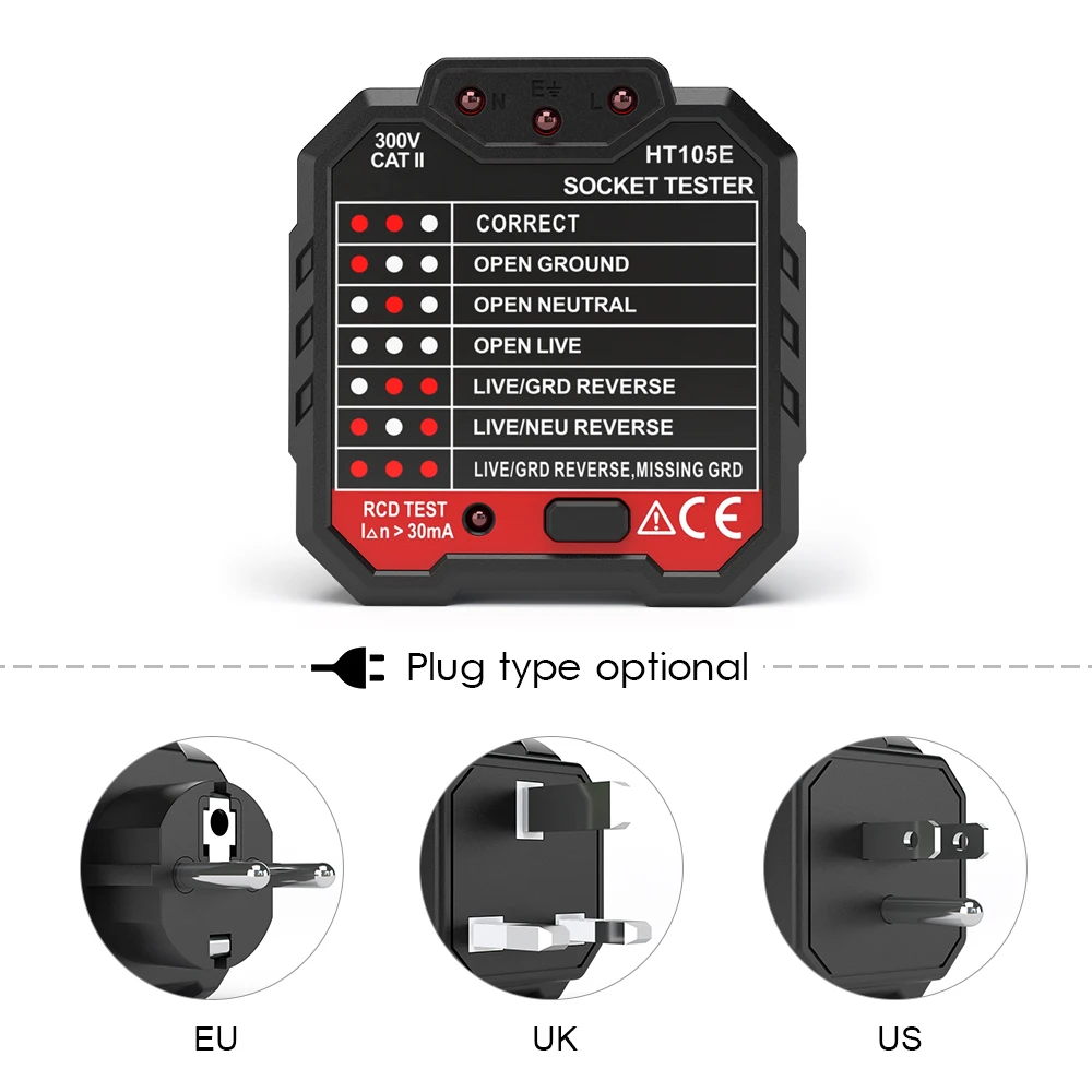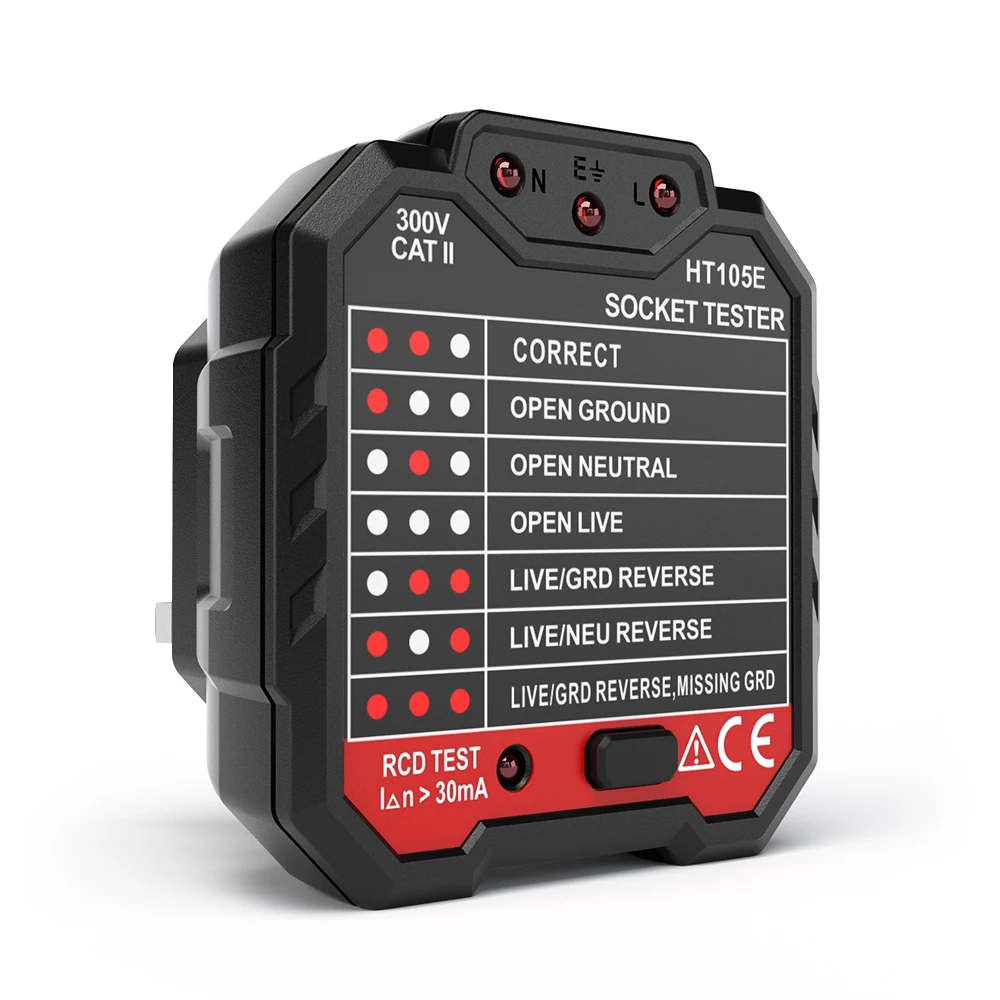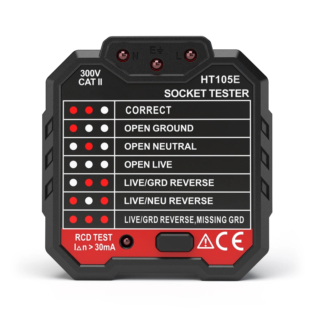 * 7 LED Light Patterns - With 7 easy to read indicators to indicate the state of the socket, easy to judge: Correct, Open Ground, Open Neutral, Live/Neutral Reverse, Live/Ground Reverse, Open Live & Live Neutral Reverse.