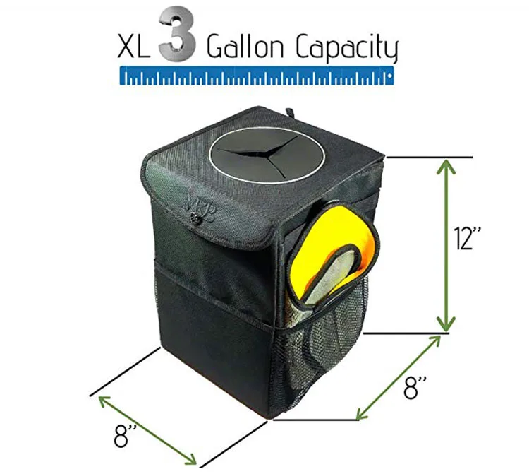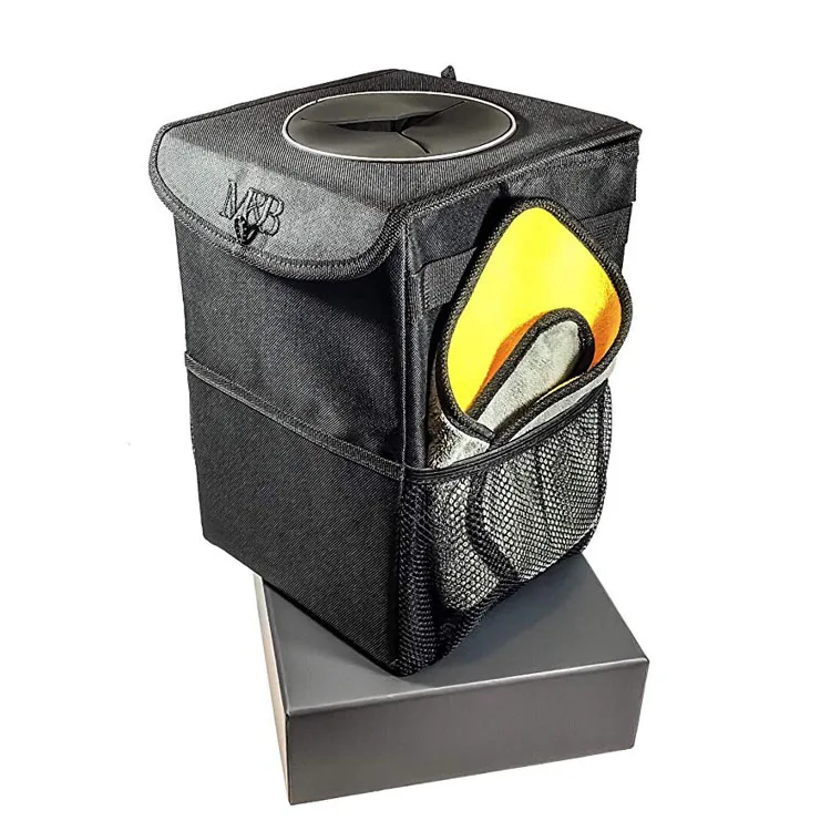 | Product Name: Collapsible Heavy duty reinforced car garbage trash can storage bag with top rubber lid hole | |